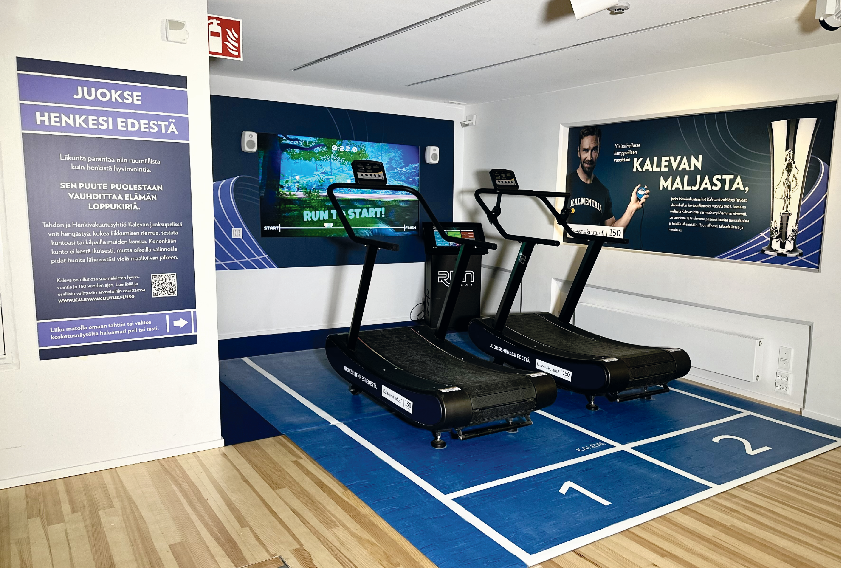 Kalevan ja TAHDON yhteistyön ensiaskeleet otetaan juoksumatolla, kun museon kävijät voivat testata kuntoaan juoksemalla henkensä edestä. Leikkimielinen kuntotesti sopii yksinjuoksijalle tai sitten voi juosta kaverin kanssa kilpaa kuin Paavo Nurmi Kalevan kisoissa aikanaan.